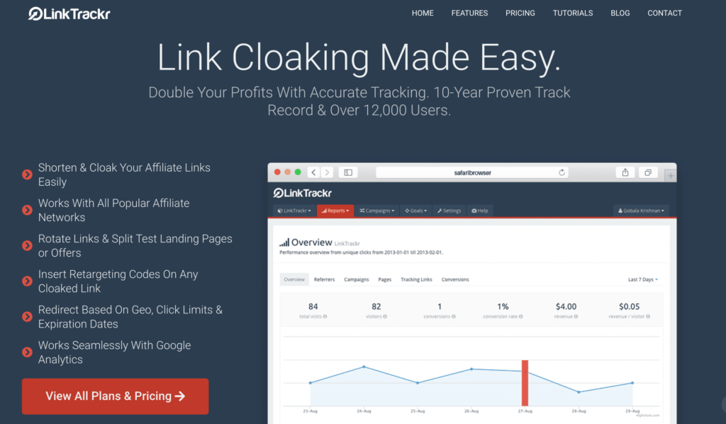 LinkTrackr is a cloud-based tool focused on link tracking, cloaking, and real-time conversion tracking. It offers tiered plans starting at $47 per month, making it a more affordable option for beginners. Key features include tracking ad campaigns, pixel and postback tracking, and real-time reporting. LinkTrackr is ideal for affiliate marketers who need a reliable, easy-to-use solution for cloaking and optimizing ad performance.